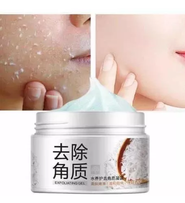Exfoliante con textura en gel: suave y gelatinoso con extractos de arroz para remover la suciedad interior de los poros y la piel muerta. No es abrasivo con la piel, ya que sus partículas son muy muy pequeñas.